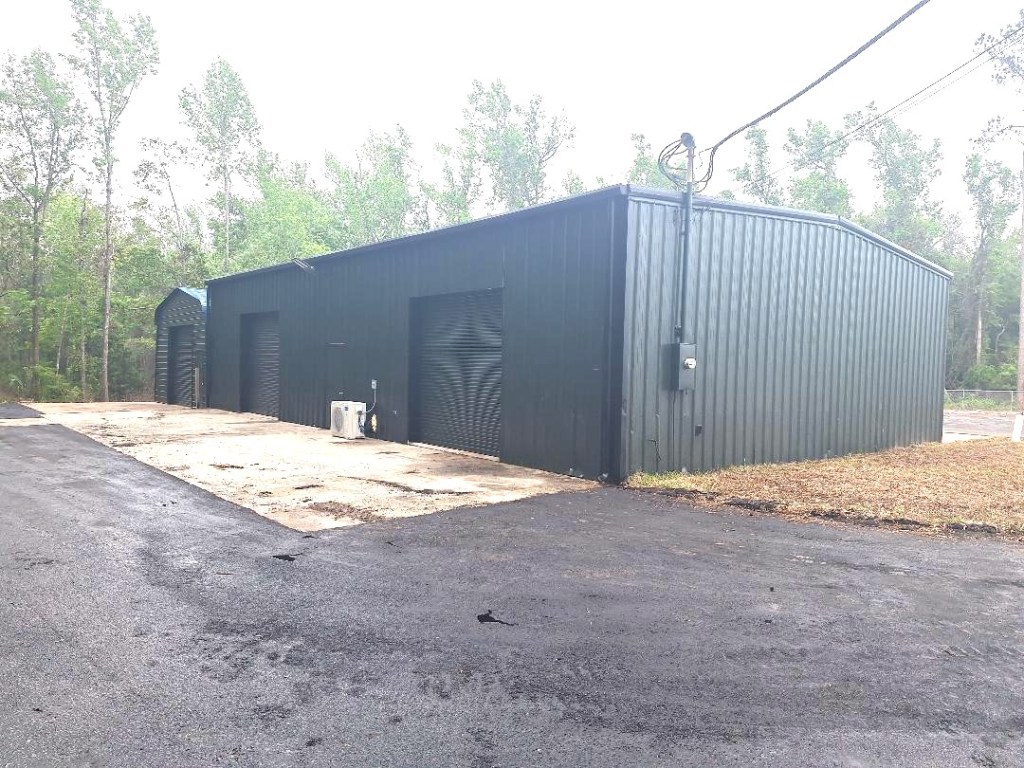 The main building has 2400 sq ft with approx 800 sq ft of air conditioned office, restroom with shower, coffee area and customer area. The large office measures 19 ft by 15 1/2 ft. The customer area measures approx 7 ft by 9 ft. The entry area measures approx 7 ft by 14 ft. There is also an additional approx 600 sq ft of 2nd floor air conditioned storage / office area.